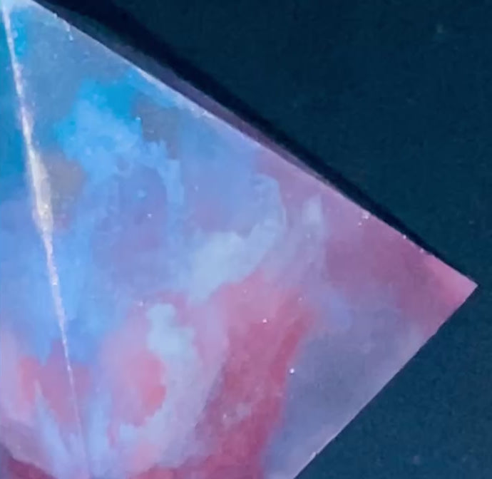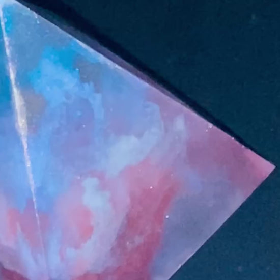 Part of the *Angel Whispers Collection*, this Resin Pyramid glimmers with the ethereal colors of light pastels.