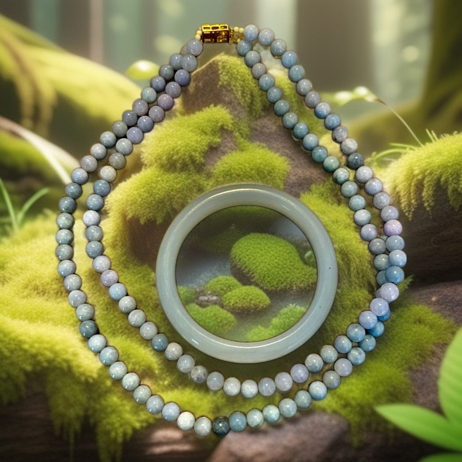 This is an Authentic Jadeite Necklace & Bangle set. Very Heavy, and very Smooth Stones/Beads. Only one tiny flaw (on the bangle). Outstanding Quality, if I was a wearer of Jewelry, I would never let go of this😊