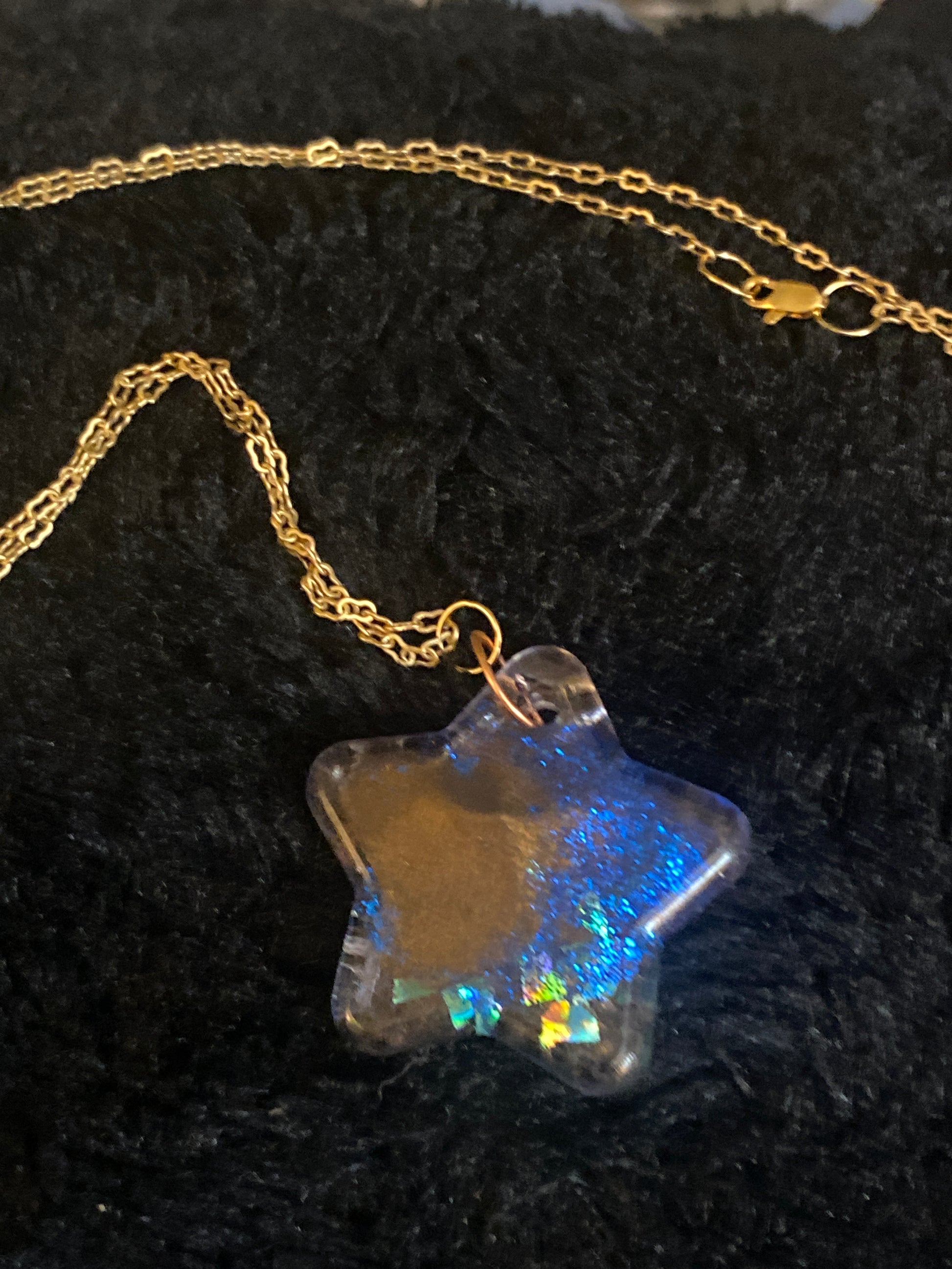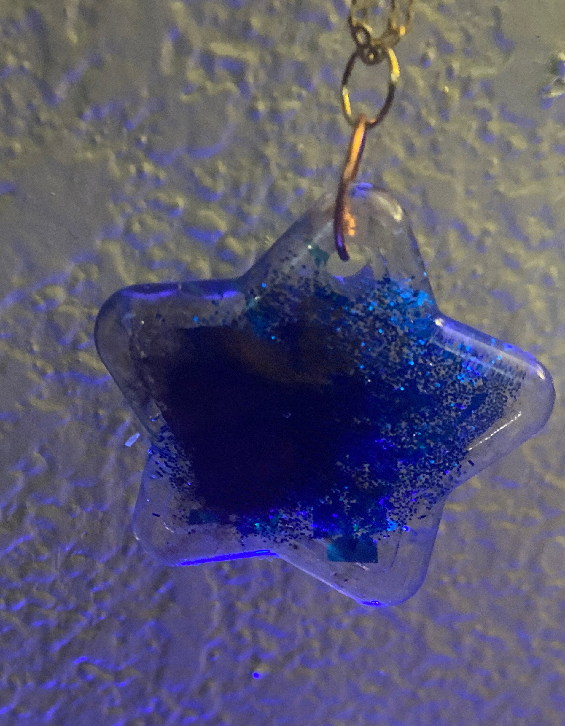 Bronze & Glittery Blue Star Pendant w/22K Gold Plated Chain ⭐️