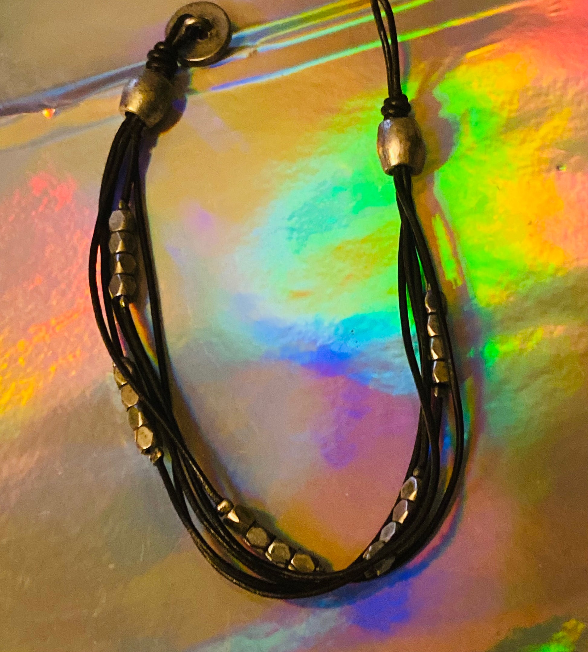 Fossil Faux Turquoise bracelet with leather band.