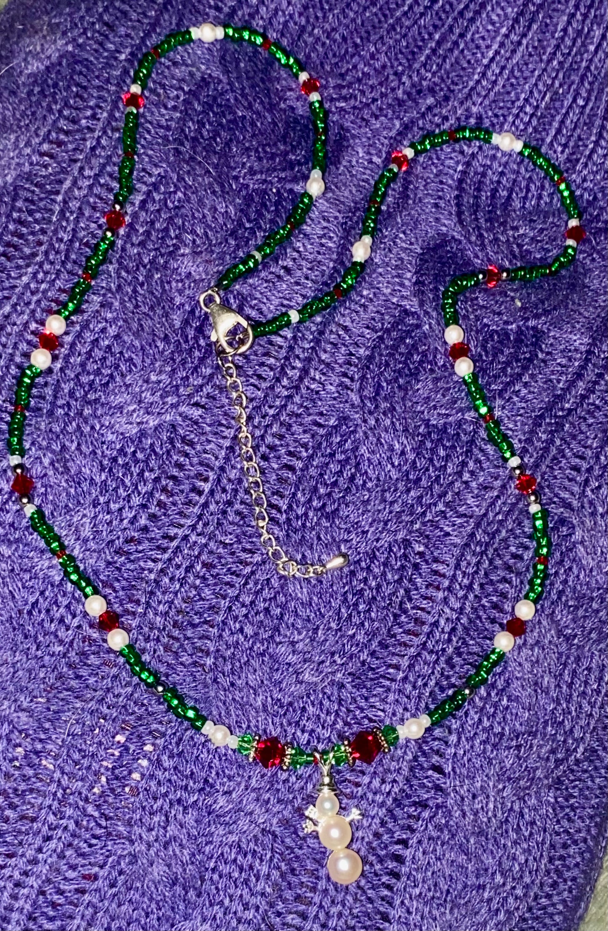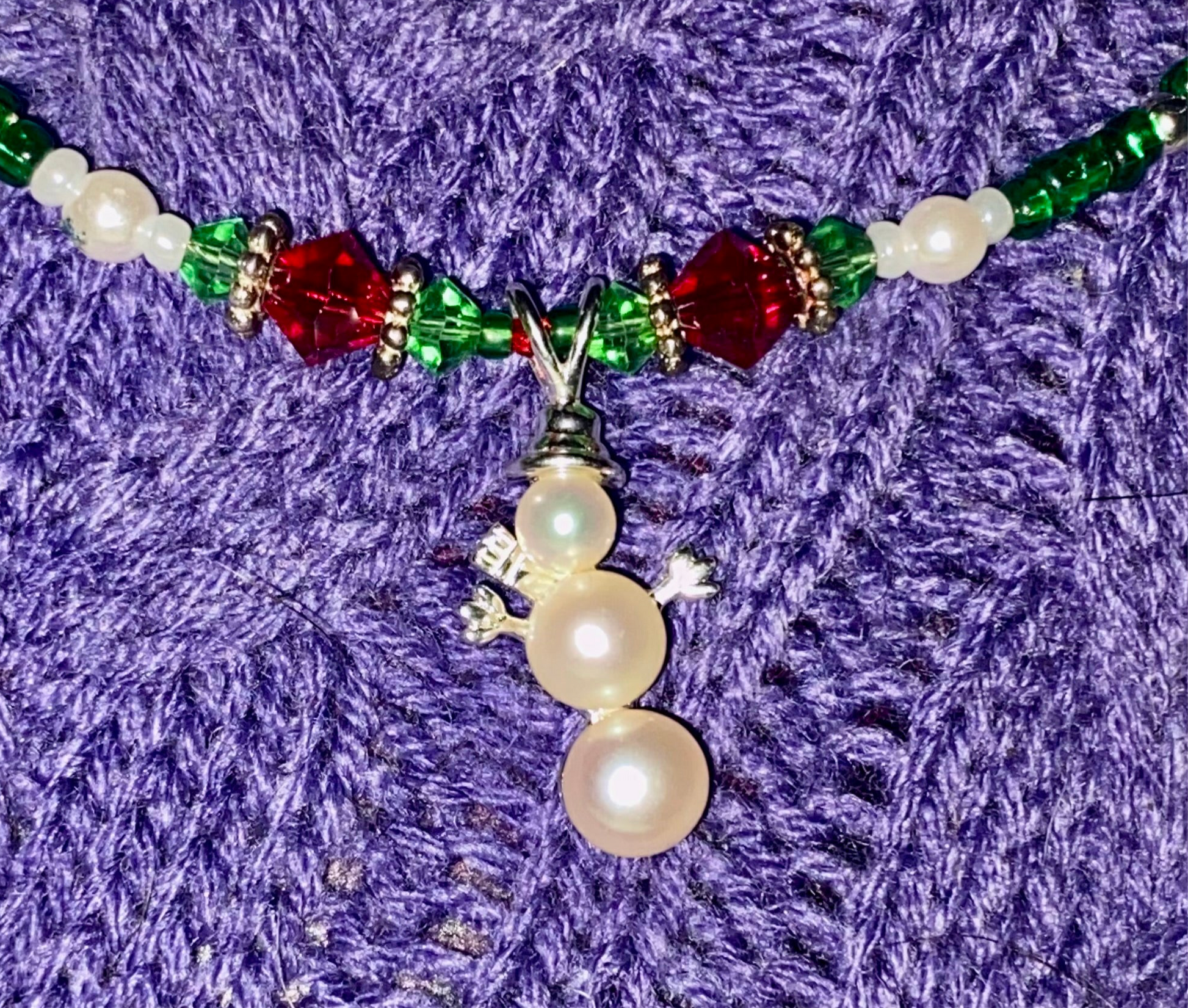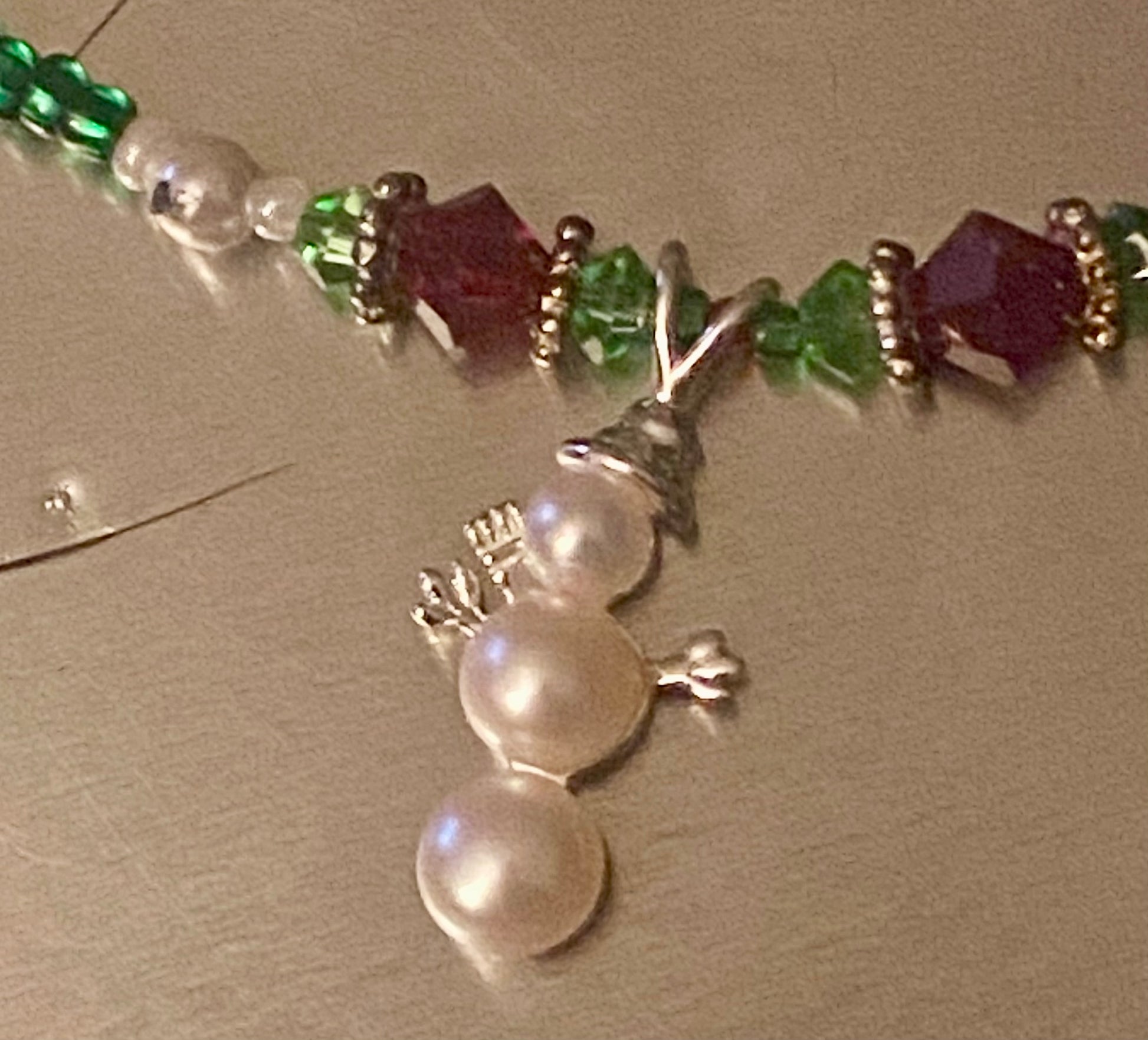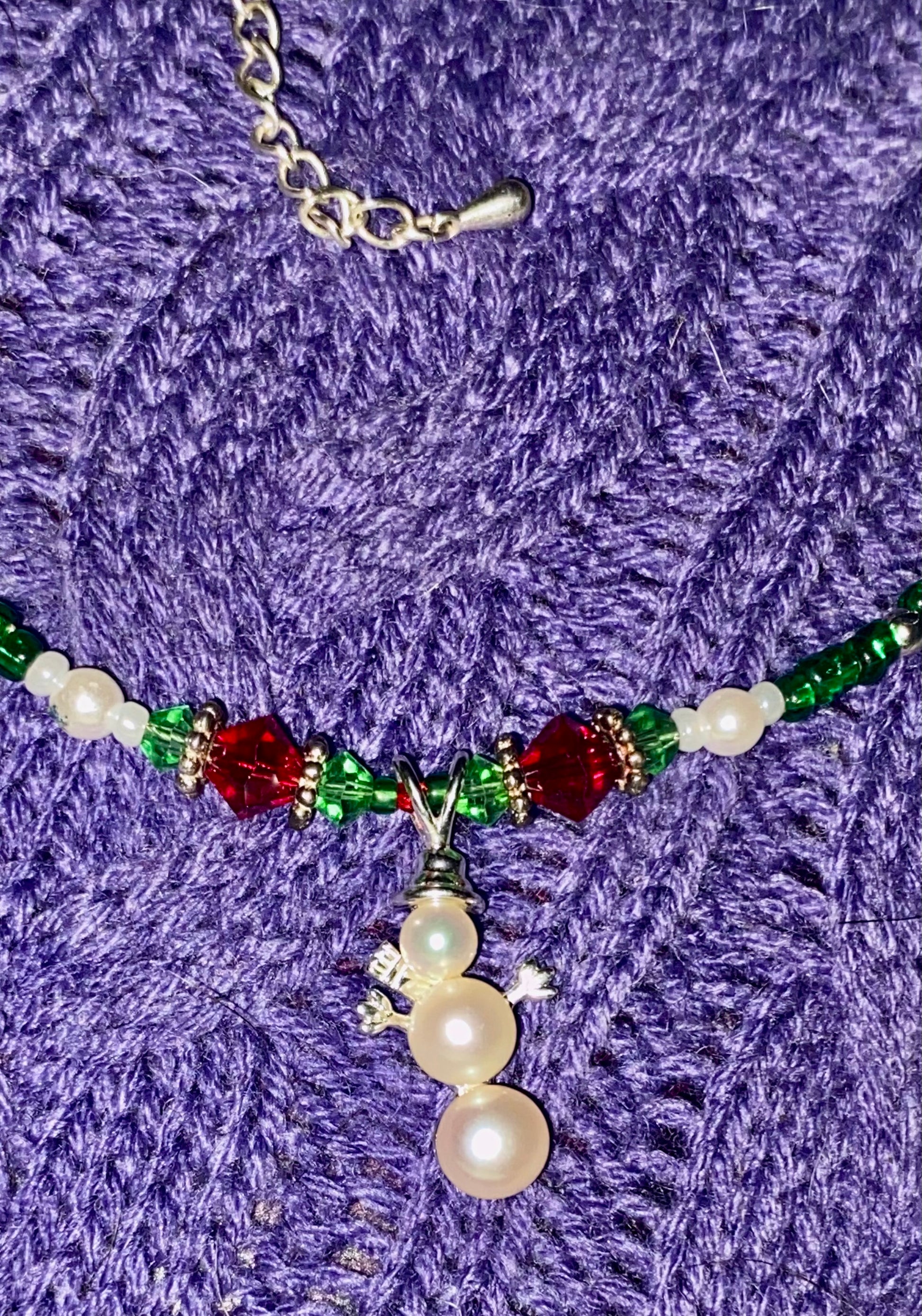 Get ready to rock Christmas in August with this charming, albeit early, Snowman made of Cultured Pearls, Sterling Silver (925), and festive Crystal Christmas Beads! 🎅🎄 (P.S. Don't worry, we won't judge your holiday spirit!)