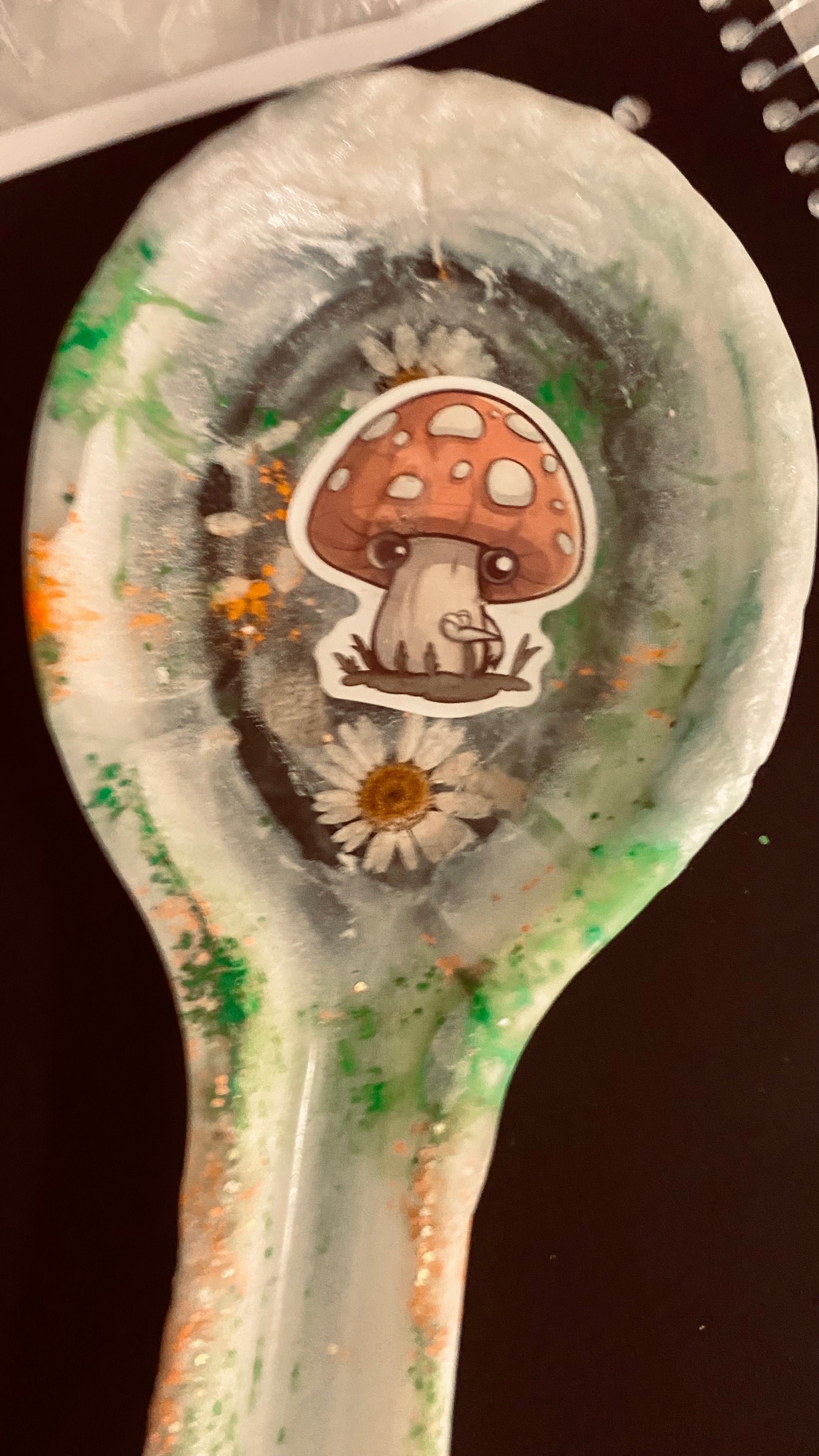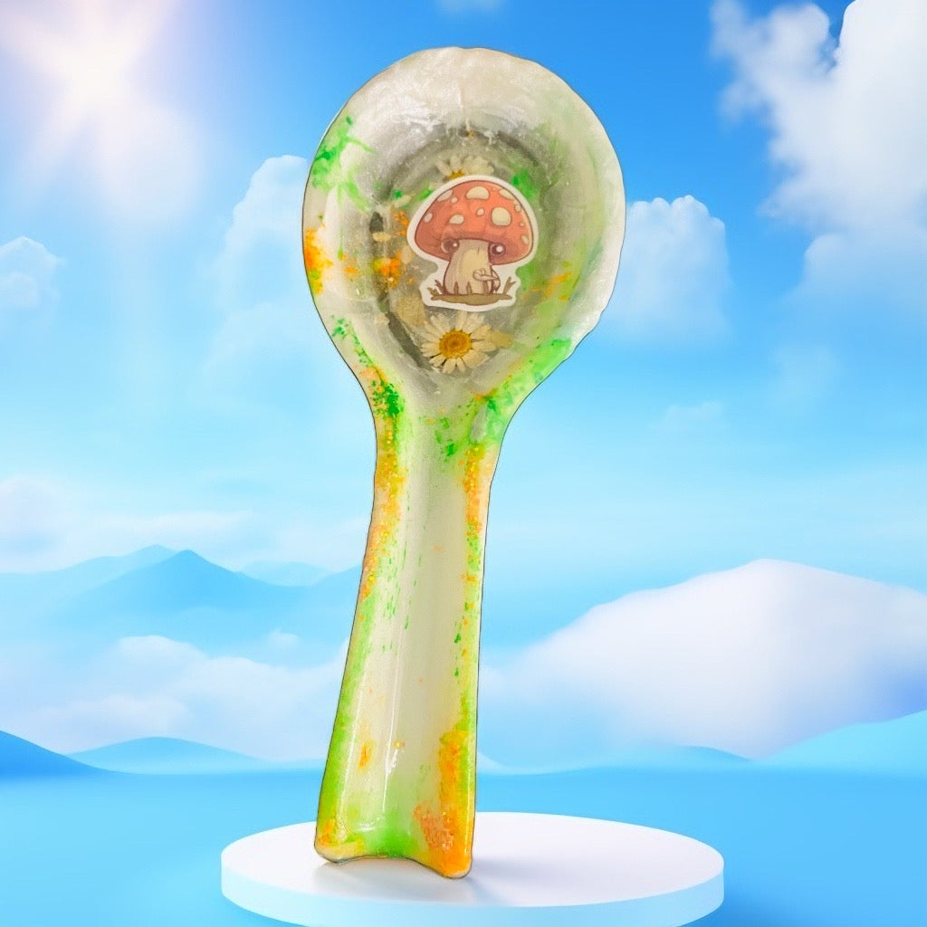 Resin, Mushroom & Dried Flowers Stove Utensil Tray