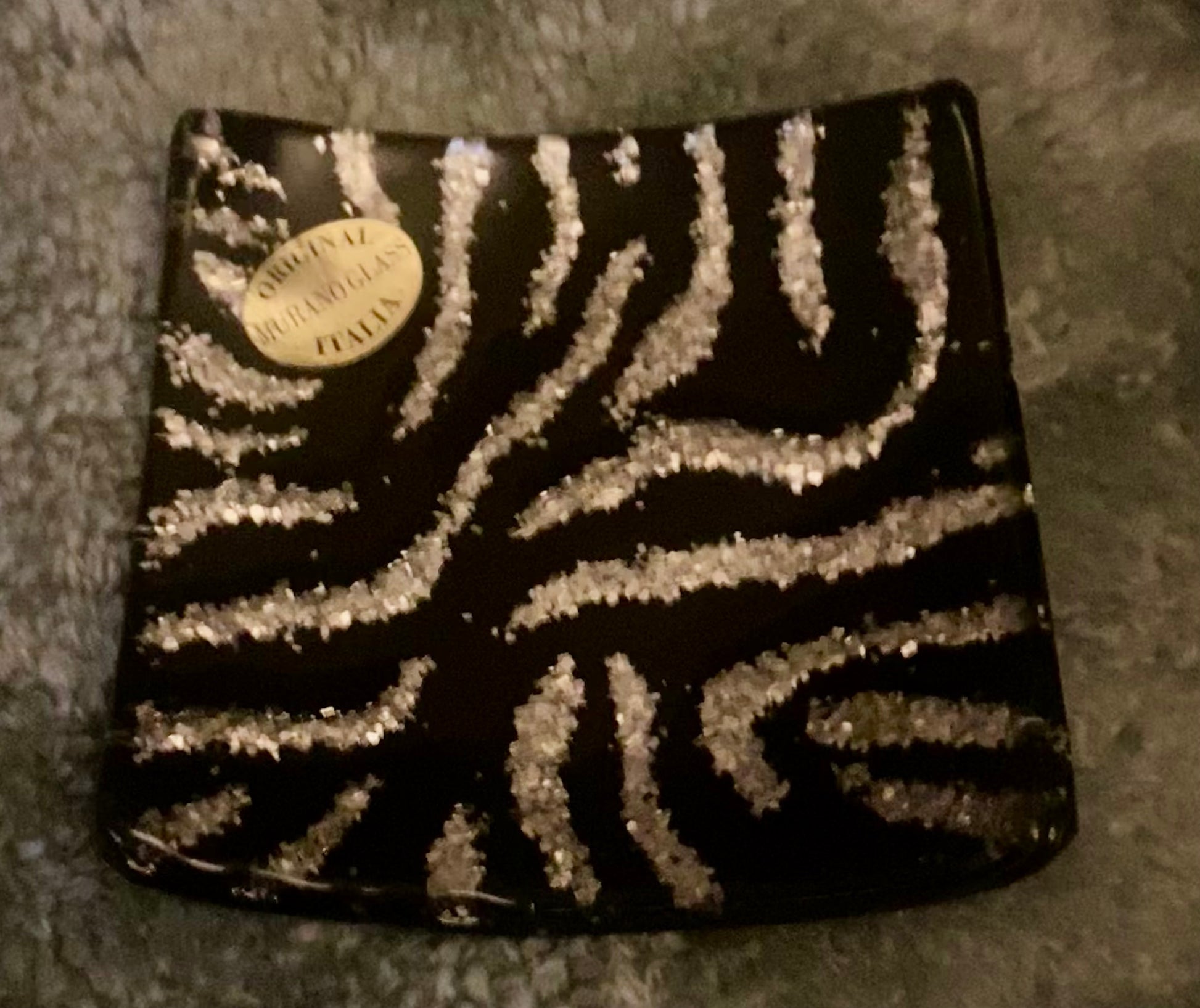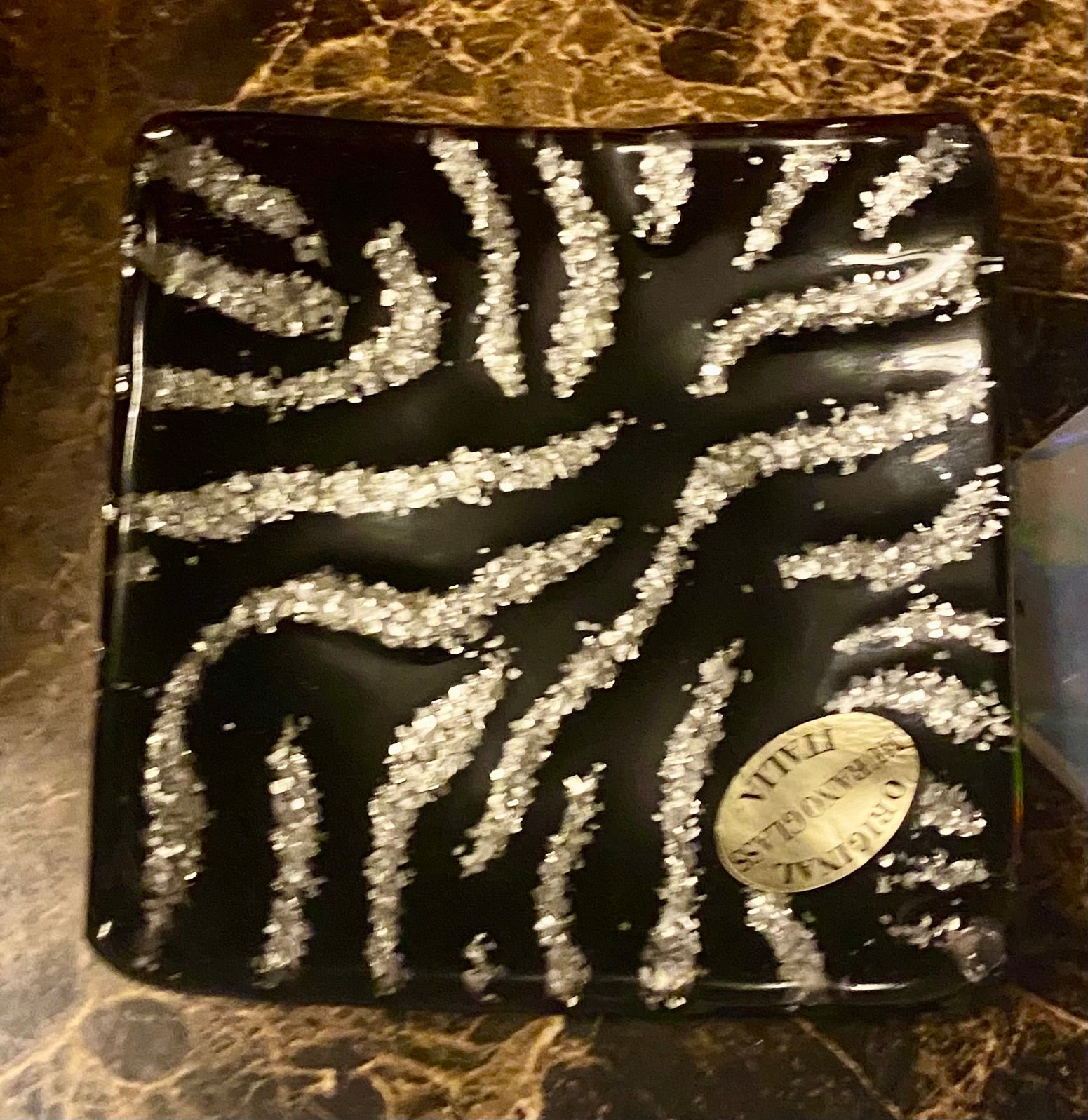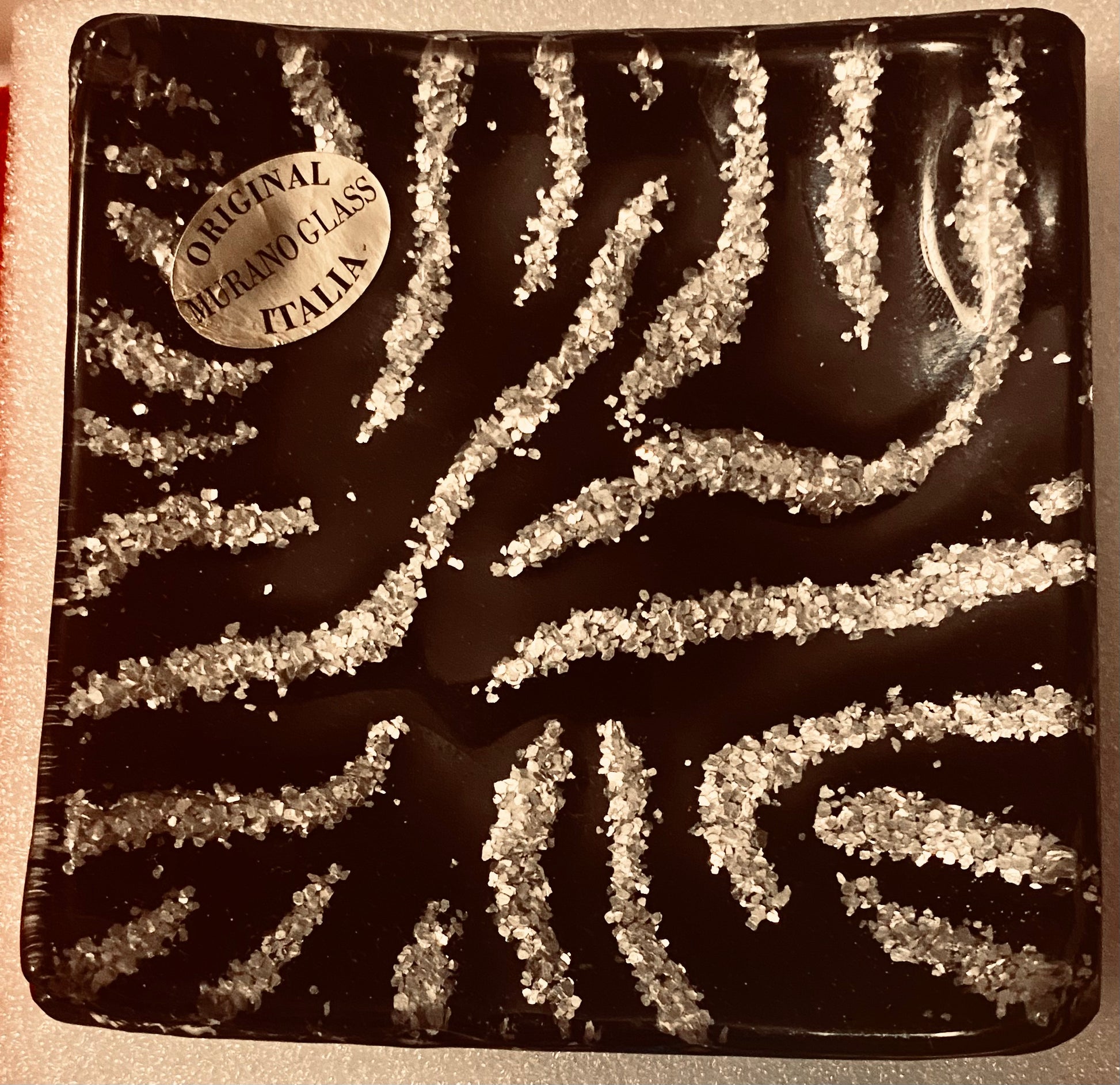 Experience the epitome of sophistication with the Original Murano Deco Glass Square Plate adorned in a striking Zebra pattern.