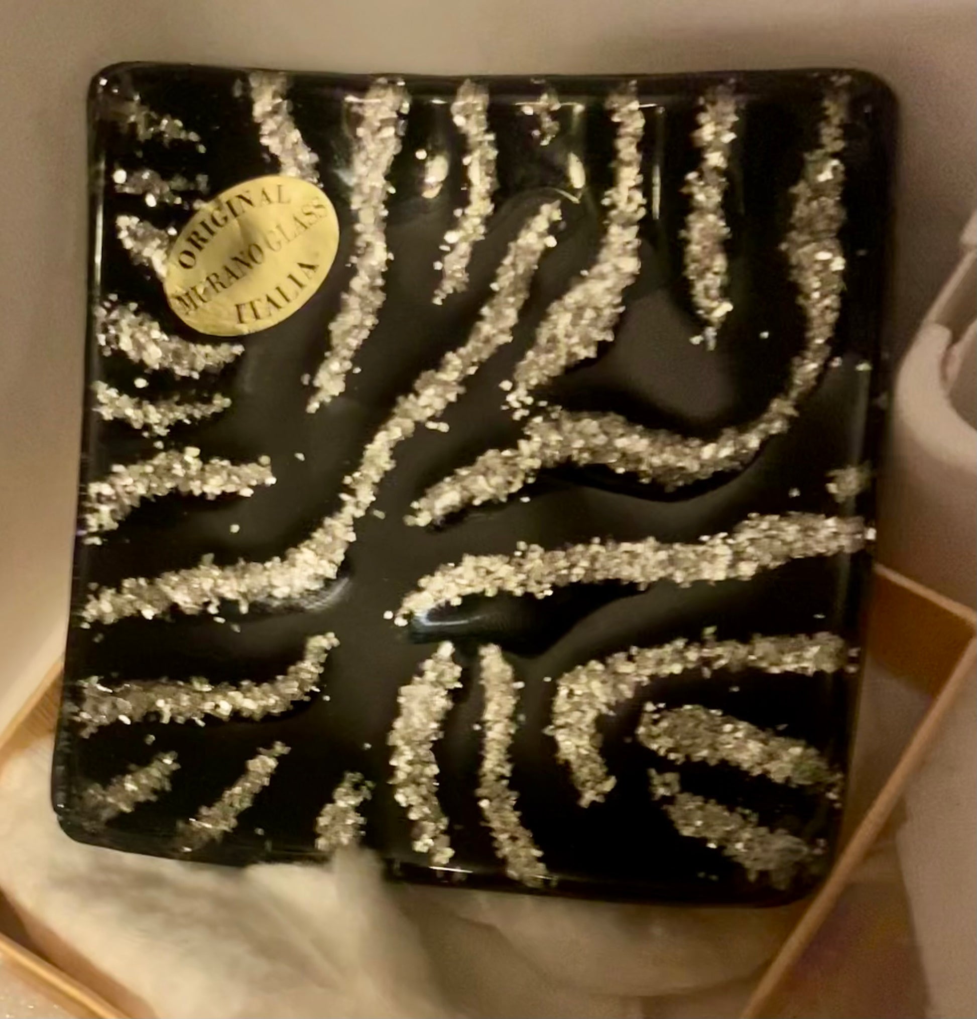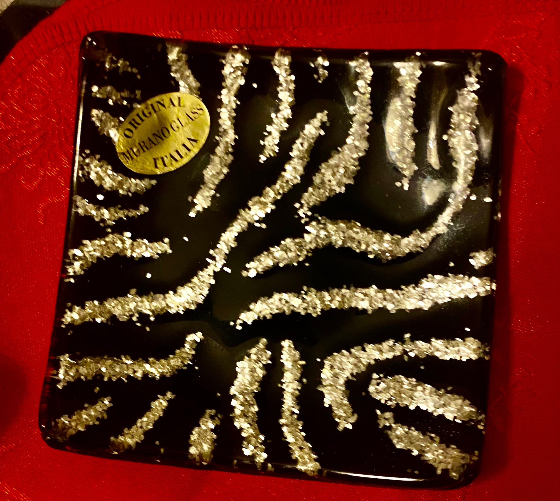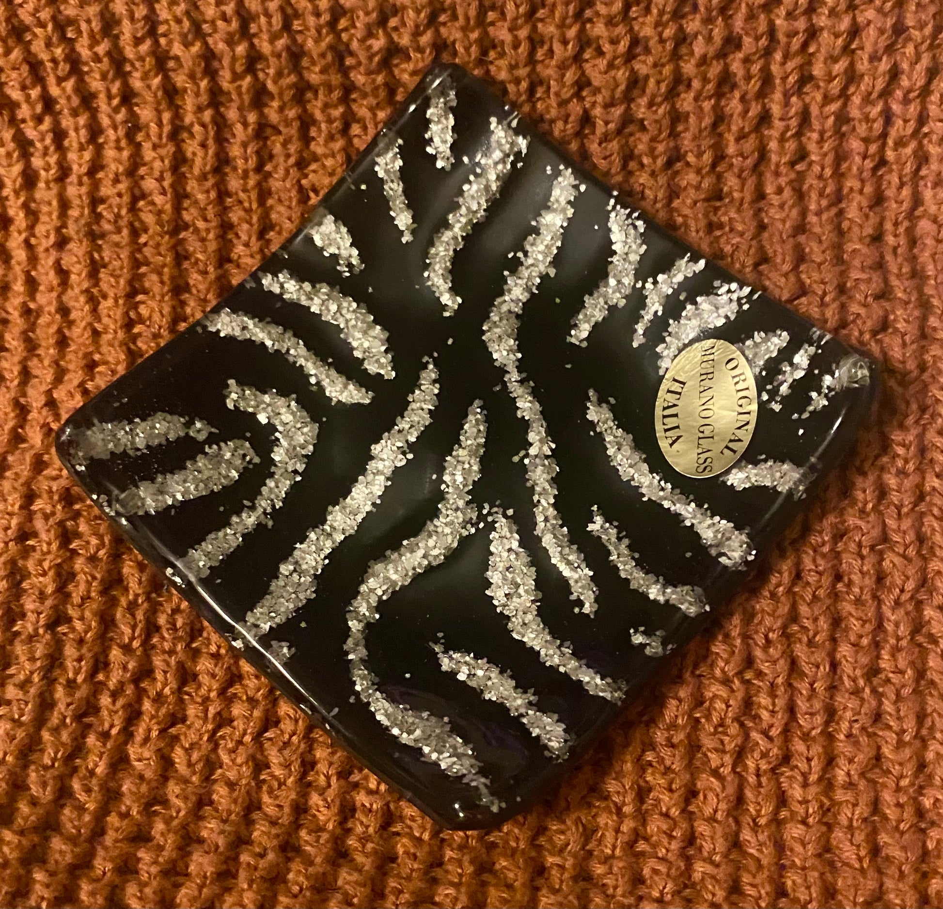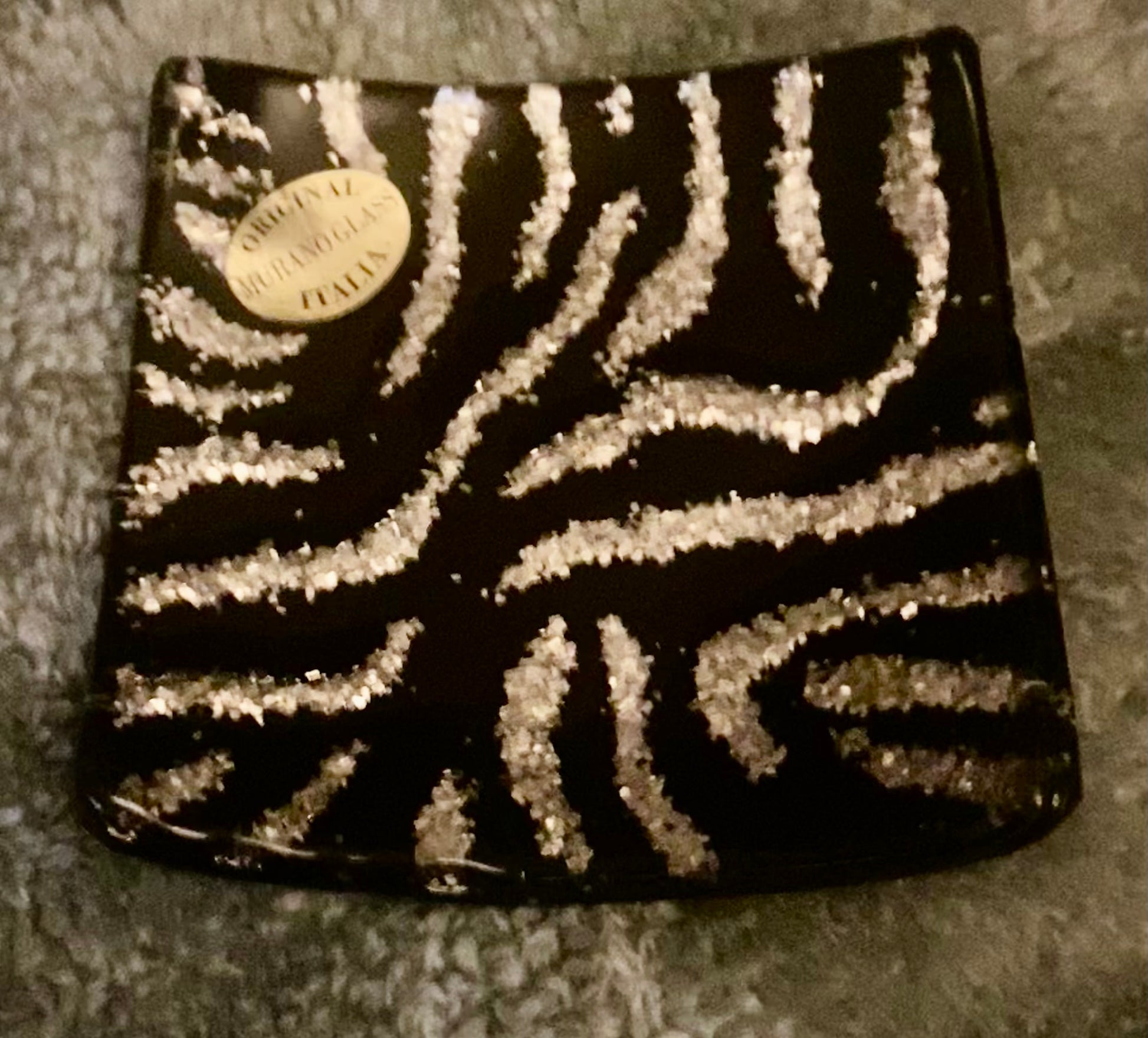 Experience the epitome of sophistication with the Original Murano Deco Glass Square Plate adorned in a striking Zebra pattern.