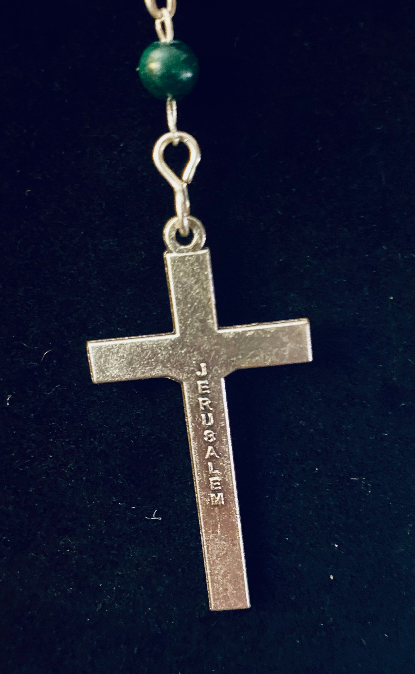 Vintage Sterling Silver, Malachite Jerusalem Rosary Necklace